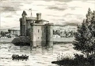 - ↑ La terminologie et l'édifice à laquelle elle s'applique sont assez confus, dans les textes et sur les cartes anciennes, selon, "Feu-Hugon", "Fargon", "Feugon", "Fourgon" ou "Faignon", ce qui vise aussi, parfois indistinctement, la tour Saint-Antoine ou l'ensemble du dispositif défensif (Cf. S. Riou, B. Dufaÿ, op. cit., p. 107)