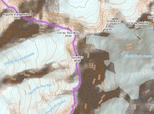Le Tour Noir est un sommet du massif du Mont-Blanc situé au sud de l'aiguille de l'A Neuve, entre le département français de la Haute-Savoie et le canton du Valais en Suisse. Il domine le glacier du même nom sur son versant sud-ouest, le glacier des Améthystes sur son versant nord-ouest et le glacier de l'A Neuve à l'est.
