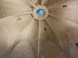Intérieurement, les murs laissent un vide central d’environ 9,5 mètres de diamètre, qui est divisé en trois grandes salles superposées de forme octogonale et de style gothique, dont deux sont voûtées sur croisée d’ogives. La majorité des autres pièces mettent également en œuvre cette architecture ogivale.