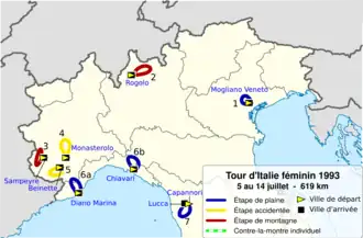 La 4e édition du Tour d'Italie féminin (Giro Donne 1993, Giro d'Italia Internazionale Femminile en italien) a lieu du 4 au .