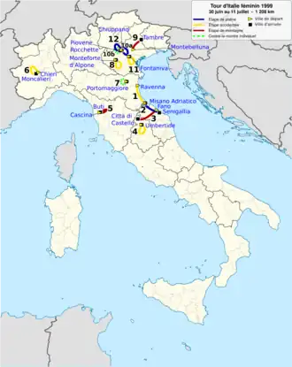 La 10eédition du Tour d'Italie féminin (Giro Donne 1999, Giro d'Italia Internazionale Femminile en italien) a lieu du 30 au . La course fait partie du calendrier UCI féminin en catégorie 2.9.1.