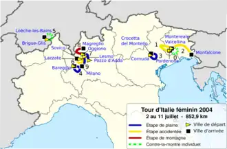 - 1 2 3 4 5 6 7 8 9 10 11 12 « RÈGLEMENT SPÉCIAL DE COURSE 15 ` GIRO DONNE "2004" », sur Giro donne (consulté le ).