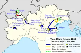 La 16eédition du Tour d'Italie féminin (Giro Donne 2005, Giro d'Italia Internazionale Femminile en italien) a lieu du 1er au . La course fait partie du calendrier UCI féminin en catégorie 2.1.