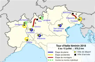 - ↑ « Le Guide du Giro Rosa 2018 », sur vélo 101 (consulté le )