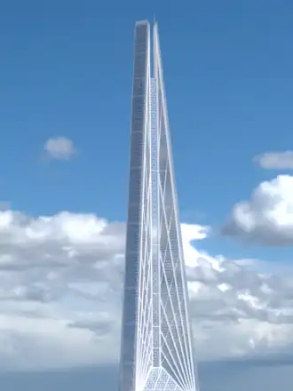 La construction, qui avait débuté en et aurait dû s'achever en 2012, a été suspendue en [1]. La tour devait atteindre 612,2 m, et devenir ainsi la plus haute tour d'Europe jamais construite, et la deuxième plus haute tour du monde, derrière la Burj Khalifa de Dubaï.