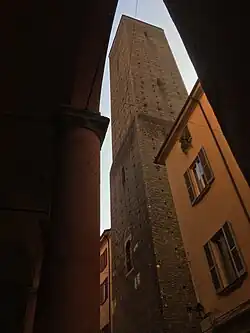 Érigée dans la seconde moitié du XIIe siècle, elle mesure 61 mètres de haut, ce qui en fait la deuxième tour la plus haute de Bologne après la tour des Asinelli. Par le passé, elle était d'ailleurs probablement encore plus élevée, comme en témoignent à la fois l'épaisseur considérable des murs à la base (environ 2,28 mètres), et la présence d'une fenêtre coupée du toit actuel.