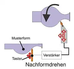 Un palpeur suit la génératrice du gabarit et retransmet par système hydraulique le mouvement transversal à l’outil. Sur un tour simple comme le tour parallèle, on distingue deux sortes de techniques :