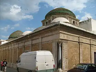 La salle la plus importante du complexe est celle réservée aux souverains. Elle abrite les tombeaux de treize beys régnants[7]. De plan carré, mesurant quinze mètres de côté, cette salle reproduit, en plus petit, l'élévation d'une mosquée ottomane classique : quatre grands piliers cruciformes soutiennent une vaste coupole centrale légèrement bulbeuse qui est épaulée par quatre demi-coupoles sur les côtés et quatre petites coupoles aux angles ; cette disposition des coupoles n'a d'autre équivalent dans la médina qu'à la mosquée Sidi Mahrez[1],[5]. La décoration soignée de la salle mêle influences italiennes, influences ottomanes et traditions locales ; les parties basses des murs et des piliers sont revêtues de panneaux en marqueterie de marbre polychrome jusqu'à une hauteur de 2,5 mètres tandis que le plâtre finement sculpté orne les calottes des coupoles[5].