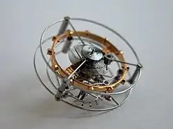 Plusieurs axes de rotations imbriqués créant un effet gyroscopique afin de compenser la rotation dans toutes les directions. Très coûteux néanmoins moins précis qu'une simple montre à quartz. La beauté de l'art et l'aspect visuel (le mécanisme est généralement bien visible pour être admiré) sont les motivations principales de ce luxe.