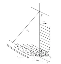 Ces tourbillons interagissent avec les ondes de Tollmien-Schlichting, ce qui conduit à une transition laminaire-turbulent plus rapide que celle liée à l'instabilité naturelle, prédite par l'équation de Orr-Sommerfeld[3],[4].