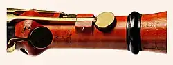 Historiquement l'invention des clés d'extension est attribuée à la famille Hotteterre de La Couture-Boussey vers , elles sont d'abord activées par l'auriculaire de la main inférieure gauche ou droite (extension de l'ambitus vers le registre grave) et étaient fixés avec un montage transversal dans l'encoche d'un anneau extérieur réalisé par le tourneur sur le corps de l'instrument de musique avec un fil de cuivre comme axe de rotation[1],[2]. Les premières clés ont permis d'atteindre des nouveaux trous percés en aval ou en amont des 8 trous accessibles comme sur le corps d'une flûte à bec ordinaire.