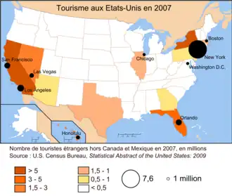 - ↑ Florence Evin, « Les villes américaines très en vogue chez les touristes français », sur Le Monde,