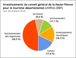Le montant des investissements du conseil général pour le tourisme départemental s'est élevé à 3 931 000 €, en se répartissant comme suit (en milliers d'euros)[1] :