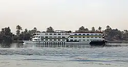De nombreuses croisières se déroulent à bord de grands navires qui fonctionnent comme des hôtels flottants. D'autres voyages sur le Nil peuvent se faire sur une felouque, un voilier traditionnel, au rythme de l'eau, uniquement poussés vers le delta du Nil par le vent et les courants, invitant ainsi les passagers à profiter du cadre naturel et à observer les berges du Nil[35].