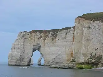 Le littoral en Normandie peut offrir des paysages sauvages et préservés en Seine-Maritime avec les falaises de la Côte d'Albâtre dont les plus renommées sont celles d'Étretat et les plus hautes, celles du Trėport. Des falaises sont aussi présentes à Villers-sur-Mer dans le Calvados, celles des Vaches noires. Dans la Manche, on retrouve aussi les falaises du Cap de la Hague. Le littoral normand présente de même des paysages caractérisés par des landes, principalement à l'ouest de la région en Baie du Mont-Saint-Michel et dans les Îles anglo-normandes. Le littoral comporte par ailleurs, d'est en ouest, quatre réserves naturelles d'importance nationale : l'estuaire de la Seine, la falaise du Cap-Romain, le domaine de Beauguillot et la mare de Vauville [2]. La Normandie se compose aussi de nombreuses plages de sable prisées notamment à Deauville, Granville. Il existe aussi des plages de galets par exemple au Havre.