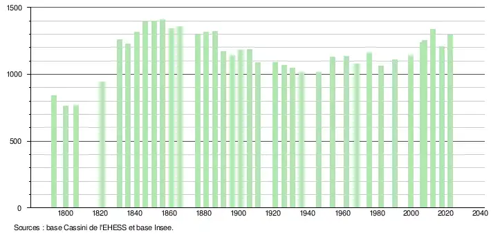 - ↑ Fiches Insee - Populations de référence de la commune pour les années 2006, 2007, 2008, 2009, 2010, 2011, 2012, 2013, 2014, 2015, 2016, 2017, 2018, 2019, 2020, 2021 et 2022.
