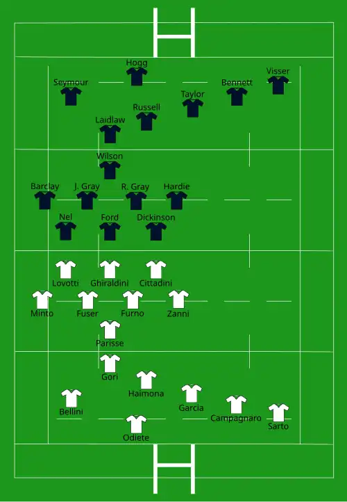 - 3 essais : Hogg 32e, Taylor 35e, Visser 65e
