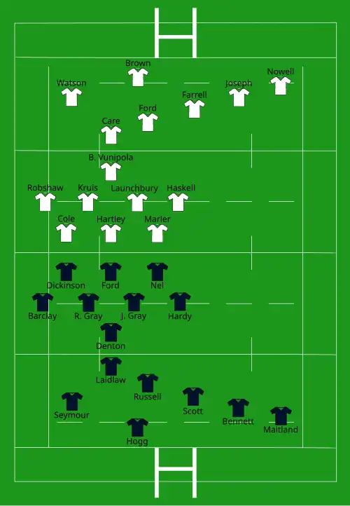 - 3 essais : Hogg 19e, Gray 55e, Dunbar 77e