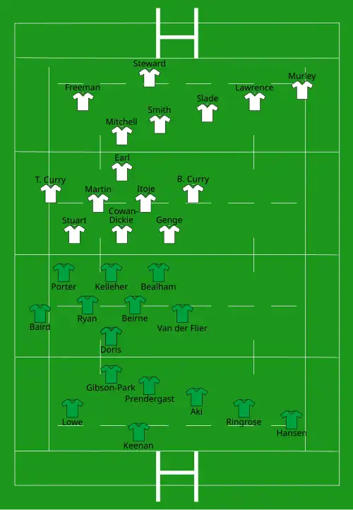 Côté XV du Chardon, Jack Dempsey est forfait et remplacé par Matt Fagerson. Gregor Brown intègre les titulaires au détriment de Jonny Gray qui rejoint les remplaçants. Jamie Dobie, Ben Muncaster et Marshall Sykes sont les nouveaux remplaçants par rapport au dernier match[68]. La veille de la rencontre, Jonny Gray déclare forfait, il est remplacé par Ewan Johnson[69].