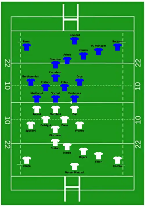 - 3 essais de Franco (29e), Tounesi (57e) et Vecchini (60e).