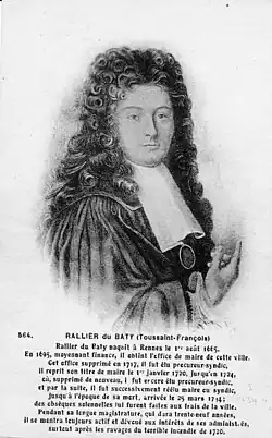 Rallier du Baty est resté maire pendant 39 ans, ce qui constitue le plus long mandat à ce poste de la ville de Rennes[11].