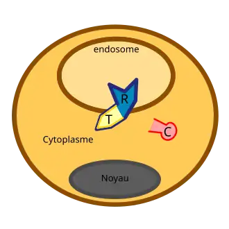 Après interaction avec son récepteur cellulaire, la toxine peut s’introduire dans le récepteur par endocytose.