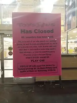 - ↑ (en) Samantha Masunaga, « Toys R Us is closing up to 182 stores, 27 of them in California », sur Los Angeles Times.com,