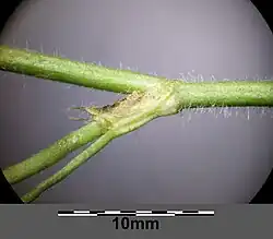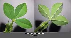 La plante mesure 5 à 25 cm, est velue, étalée ou ascendante ; les folioles obovales ou oblongues, à peine denticulées, ont des nervures latérales non arquées en dehors. Les stipules ont la partie libre large, brusquement terminée en pointe sétacée, les supérieures dilatées[2].