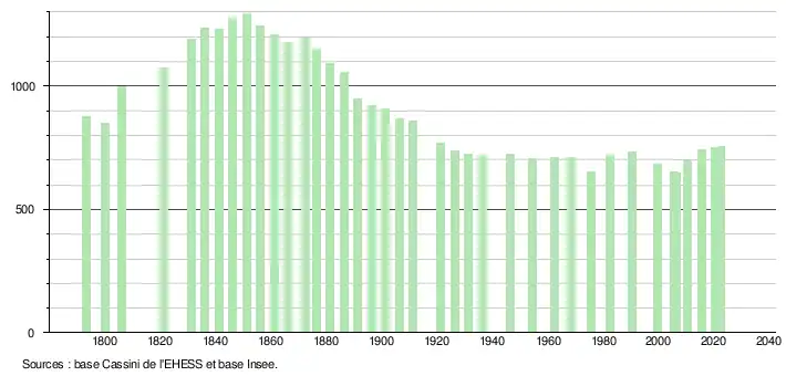 - ↑ Fiches Insee - Populations de référence de la commune pour les années 2006, 2007, 2008, 2009, 2010, 2011, 2012, 2013, 2014, 2015, 2016, 2017, 2018, 2019, 2020, 2021 et 2022.