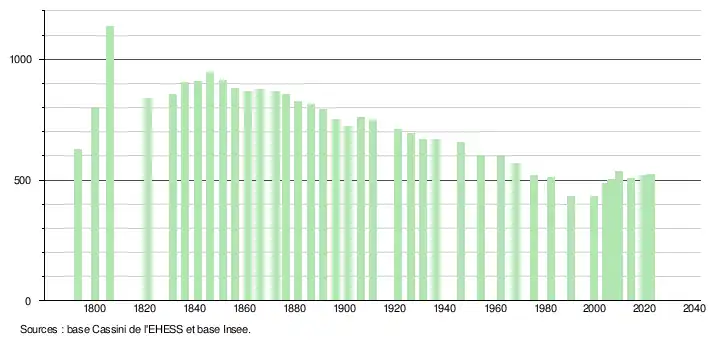 - ↑ Fiches Insee - Populations de référence de la commune pour les années 2006, 2007, 2008, 2009, 2010, 2011, 2012, 2013, 2014, 2015, 2016, 2017, 2018, 2019, 2020, 2021 et 2022.