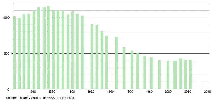 - ↑ Population municipale de référence en vigueur au 1er janvier 2025, millésimée 2022, définie dans les limites territoriales en vigueur au 1er janvier 2024, date de référence statistique : 1er janvier 2022.