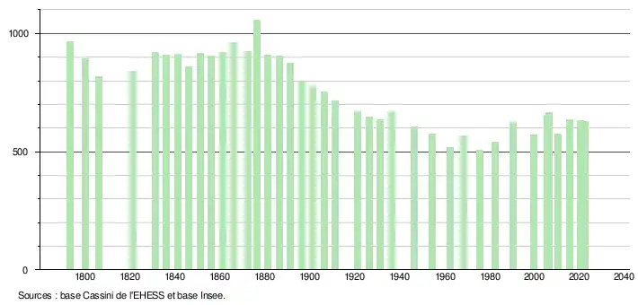 - ↑ Fiches Insee - Populations de référence de la commune pour les années 2006, 2007, 2008, 2009, 2010, 2011, 2012, 2013, 2014, 2015, 2016, 2017, 2018, 2019, 2020, 2021 et 2022.