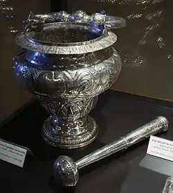 Seau à aspersion avec son goupillon en argent, portant le poinçon « I.P.G. » de J.-P. Le Goff, orfèvre à Morlaix dans la seconde moitié du XVIIIe siècle[Couffon 1], classé au titre objet des monuments historiques le [P 16].