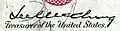 La signature du trésorier, ainsi que celle du secrétaire du Trésor, figurent sur les billets de banque américains.