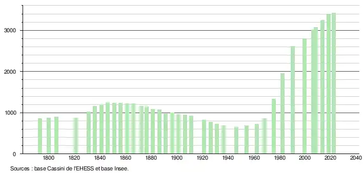 - ↑ Fiches Insee - Populations de référence de la commune pour les années 2006, 2007, 2008, 2009, 2010, 2011, 2012, 2013, 2014, 2015, 2016, 2017, 2018, 2019, 2020, 2021 et 2022.