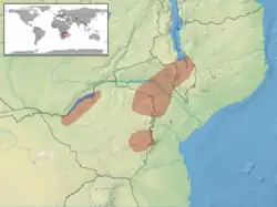 Cette espèce se rencontre au Zimbabwe, dans le sud-ouest de l'Angola (une population isolée), dans le sud du Malawi et au Mozambique[1].