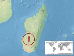 Cette espèce est endémique du parc national de l'Isalo à Madagascar[1].