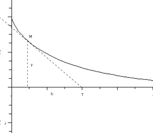 - (h, –y) est proportionnel à (x', y') car (MT) est tangente à la courbe.