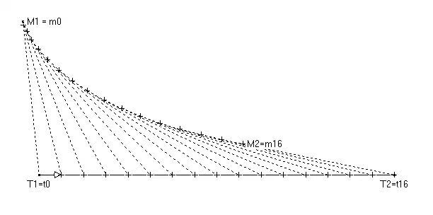 Pour construire une approximation d'une tractrice entre les points M1 et M2 associés aux points T1 et T2, on divise le segment [T1T2] en n intervalles [titi+1] qui permettent de construire n + 1 points m0, … , mn de la tractrice (m0 = M1 et mn = M2) de proche en proche. Si r est la distance M1T1, on trace le segment [miti+1] et l'on place le point mi+1 sur ce segment et à une distance r de ti+1.