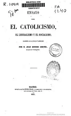 - ↑ Titre original Verdadera doctrina sobre acatamiento, obediencia y adhesión a los poderes constituidos, y sobre la licitud de la resistencia a los poderes ilegítimos y de hecho. La política tradicionalista