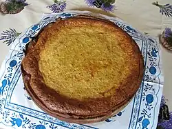 Tarte du Lothier de Genappe à base de semoule de riz sur fond d'abricots.