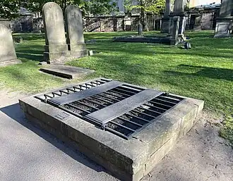 Les foules en colère n'étaient pas le seul problème que rencontraient les trafiquants. Naples écrivit ainsi qu'il devait éviter les patrouilles nocturnes et les chiens laissés en liberté dans les cimetières[39]. Les aristocrates et les personnes aisées plaçaient leurs défunts dans des cercueils triples ou dans des caveaux parfois gardés par des serviteurs. Pour les moins riches, des cercueils doubles étaient disponibles et placés dans des tombes profondes sur des terrains privés. Des dalles de pierre pouvaient également être placées sur le cercueil tandis que l'excavation pouvait être comblée avec des roches plutôt qu'avec de la terre. Les corps étaient parfois accrochés à la caisse avec des bandes de métal tandis que des arceaux métalliques étaient placés autour du cercueil[40],[41]. En Écosse, des cages en fer appelées mortsafes étaient placées au-dessus d'un ou de plusieurs cercueils tandis que des treillis pouvaient être fixés à des blocs de pierre descendus lors de l'enterrement[40],[41]. De telles protections étaient parfois vaines ; au moins un cimetière londonien appartenait à un anatomiste qui « demandait une somme rondelette pour l'enterrement et exigeait ensuite huit à douze guinées à ses étudiants pour qu'ils puissent le déterrer[42] ».
