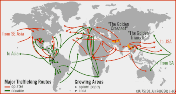 D’après l’OICS dans son rapport du , l’Afghanistan est le premier producteur mondial de pavot à opium (87 % de la production mondiale), 60 % du produit transite par l’Asie occidentale et 20 % par l’Asie centrale pour rejoindre ensuite essentiellement l’Europe mais aussi l’Amérique du Nord.