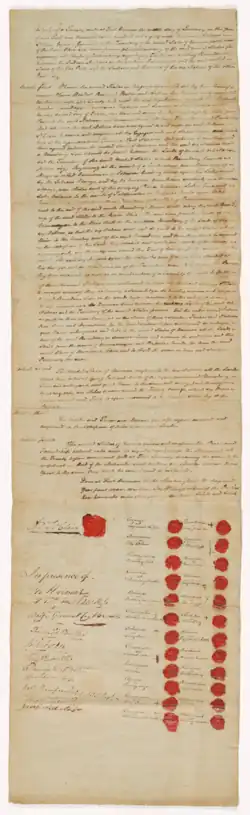 En 1795, avec le traité de Greenville, les tribus ont été forcés d'abandonner leurs revendications de la plupart de ce qui est maintenant l'État de l'Ohio. Ce traité a divisé les Territoires du Nord-Ouest en deux parties ; l'une pour les Amérindiens et une pour les colons américains.