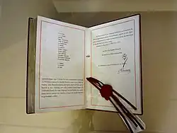 - ↑ Vincent Laniol, « Des archives emblématiques dans la guerre : le destin « secret » des originaux des traités de Versailles et de Saint-Germain pendant la seconde guerre mondiale », Guerres mondiales et conflits contemporains, vol. 229, no 1, , p. 32, 35 (ISSN 0984-2292 et 2101-0137, DOI 10.3917/gmcc.229.0021, lire en ligne, consulté le ).
