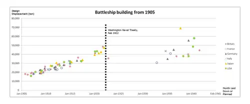 Nombre de tentatives furent effectuées pour construire de nouveaux cuirassés dans les limites du traité. La nécessité d'améliorer la puissance de feu et le blindage tout en limitant le tonnage résulta dans des conceptions innovantes comme celle de la classe Nelson britannique (basée en partie sur le G3) et des deux Richelieu français.