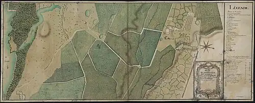 Habitation-sucrerie du sieur de Prefontaine à Cayenne, 1754[85]. - Les esclaves de jardin ou de houe représentent la main d’œuvre agricole et travaillent dans les champs. Ils sont les plus nombreux.