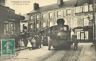 La ligne de chemin de fer Paris - Le Havre achevée en 1847, avait laissé à l'écart, par son tracé sur le plateau cauchois, le petit chef-lieu de canton de Saint-Romain-de-Colbosc, géographiquement localisé à une vingtaine de kilomètres à l'est de la Porte Océane[2]. Cette situation obligeait les habitants de ce bourg de quelque 1 800 habitants, possédant un marché important, à se rendre à la gare d'Étainhus - Saint-Romain, distante de quatre kilomètres du centre-ville[3]. Les liaisons étaient peu commodes, neuf omnibus à chevaux, lents et de capacité réduite, assuraient une relation avec la station de la Compagnie des chemins de fer de l'Ouest, qui voyait vingt-deux trains de voyageurs s'arrêter chaque jour et 130 000 passagers transiter annuellement[2] La municipalité s'émut de cette situation difficile faite à ses administrés et s'enquit de la possibilité d'y remédier. C'est alors qu'un ingénieur havrais, M. Lévêque[notes 1], soumit au maire de la commune, M. Fidel, le 27 janvier 1894, un projet de tramway à voie métrique assurant la desserte de la gare du chemin de fer d'intérêt général[4]. Après avoir envisagé‚ un moment la traction électrique, il fut décidé‚ d'utiliser la force de la vapeur selon le procédé Serpollet présenté à l'Exposition universelle de Paris de 1889[2].