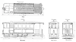 - quatre voitures à deux essieux de 40 places (20 places assises, plus 10 debout sur chacune des plates-formes ouvertes aux deux extrémités) provenant de la transformation des automotrices Serpollet pour trois d'entre elles (la quatrième aurait été fournie par les établissements Serpollet en contrepartie de la non exécution de ses engagements)[43].