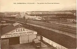 Commencée à l'automne précédent, la construction des bâtiments, achevée peu après le rapport d'avril 1901 du conseil général, coûte 67 000 francs ; au même moment intervient la fourniture de deux ponts-bascules (3 400 francs) et celle des plaques tournantes et des grues (21 400 francs). Un raccordement est exécuté entre la station de Verneuil (tramway) et la gare de Verneuil de la compagnie des chemins de fer de l'Est, aux frais du département[14]. Le dallage des gares est également approuvé par la commission départementale[15].
